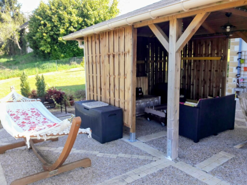 Devant le logement, une grande terrasse vous accueille pour de douces soirées sous le ciel étoilé des beaux jours ainsi qu’un barbecue avec table et chaises.